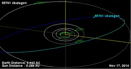 - Орбита астероида Укалегон и его положение в Солнечной системе