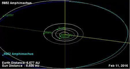 Орбита астероида Амфимах и его положение в Солнечной системе