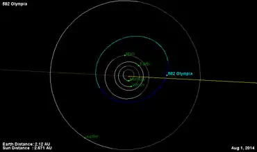 - Орбита астероида Олимпия и его положение в Солнечной системе
