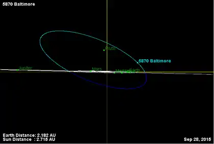 - Орбита астероида Балтимор и его положение в Солнечной системе