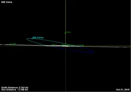 - Орбита астероида Ксения и его положение в Солнечной системе