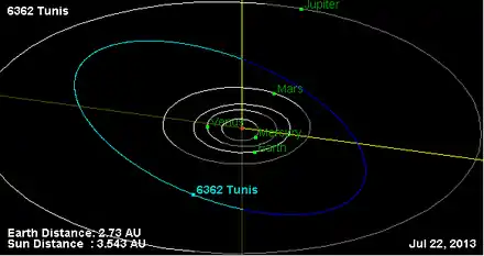 - Орбита астероида Тунис и его положение в Солнечной системе