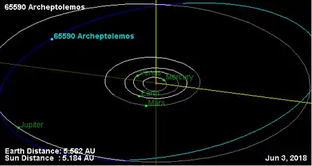Орбита астероида Архептолем и его положение в Солнечной системе