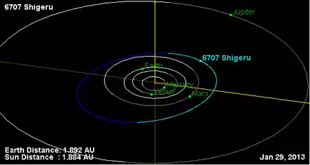 Орбита астероида Сигэру и его положение в Солнечной системе