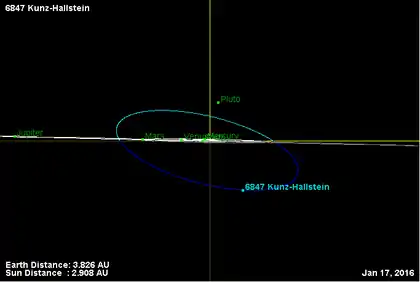 - Орбита астероида Кунц-Халльштайн и его положение в Солнечной системе