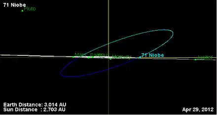 - Орбита астероида Ниоба и его положение в Солнечной системе