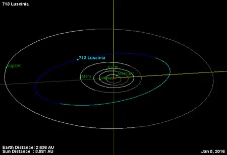 Орбита астероида (713) Люциния и его положение в Солнечной системе