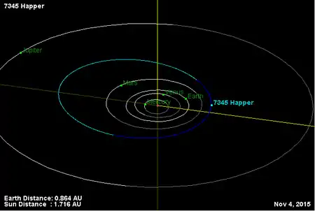 Орбита астероида Хэппер и его положение в Солнечной системе