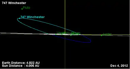 - Орбита астероида Уинчестер и его положение в Солнечной системе