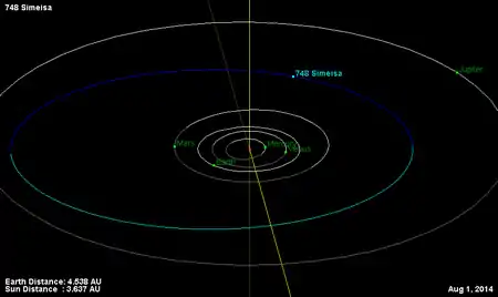 Орбита астероида Симеиза и его положение в Солнечной системе