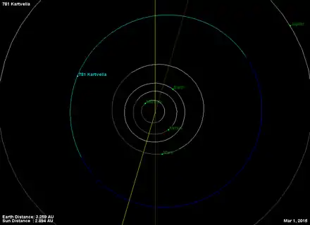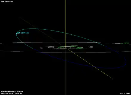 - Орбита астероида Картвелия и его положение в Солнечной системе