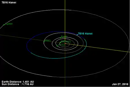Орбита астероида Ханой и его положение в Солнечной системе