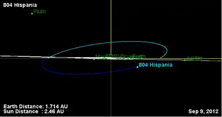- Орбита астероида Испания и его положение в Солнечной системе