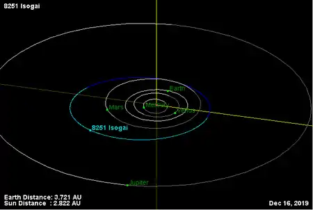 Орбита астероида Исогаи и его положение в Солнечной системе