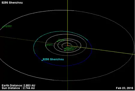 Орбита астероида Шэньчжоу и его положение в Солнечной системе