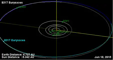 Орбита астероида Эврисак и его положение в Солнечной системе