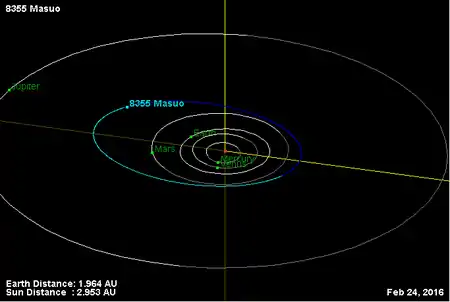 Орбита астероида Масуо и его положение в Солнечной системе