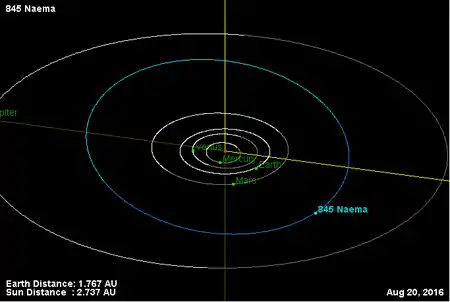 Орбита астероида Наэма и его положение в Солнечной системе