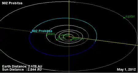 Орбита астероида Пробитада и его положение в Солнечной системе