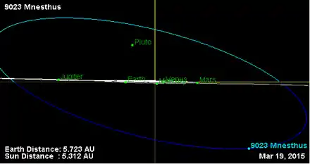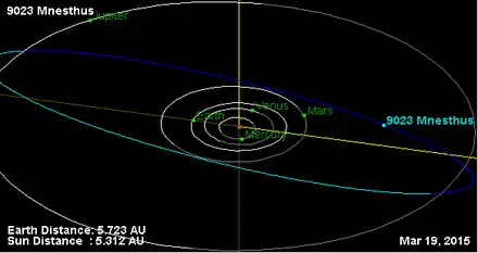 - Орбита астероида Мнесфей и его положение в Солнечной системе