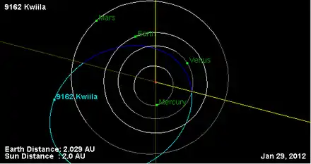 - Орбита астероида Квиила и его положение в Солнечной системе