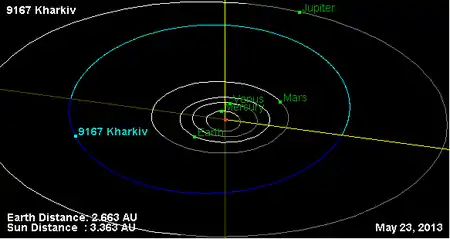Орбита астероида Харьков и его положение в Солнечной системе