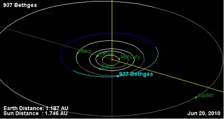 Орбита астероида Бетгея и его положение в Солнечной системе