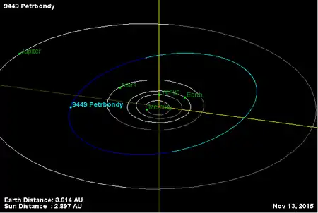 Орбита астероида Петрбонды и его положение в Солнечной системе