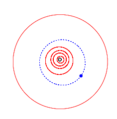 ![]() Орбита астероида (9973) Шпильман (синим), орбиты планет (красным) и Солнце в центре (чёрным). | |