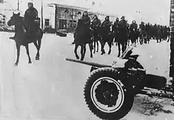 Конники корпуса генерала Павла Алексеевича Белова вступают в город Одоев, 22 декабря 1941.
