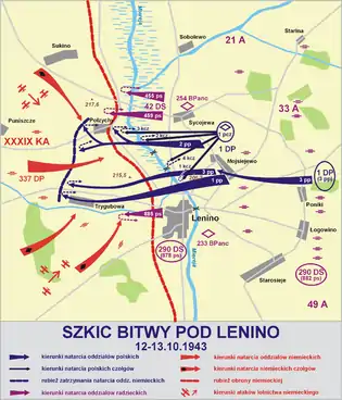 12 — 13 октября 1943 года под Ленино Могилёвской области состоялся первый бой 1-й польской пехотной дивизии, находившейся в оперативном подчинении 33-й армии Западного фронта. 1-я польская дивизия атаковала немецкие оборонительные позиции при поддержке советской артиллерии (одного миномётного полка, двух артиллерийских полков и одной гаубичной артиллерийской бригады - 67 ГАБр) и во взаимодействии с частями 42-й и 290-й советских стрелковых дивизий. Наступление 1-й Польской пехотной дивизии поддерживала 233-я танковая бригада.