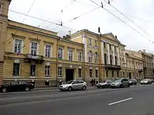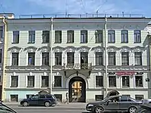 7831672000 - Дом 52 — здание Академии Российской[6][7], где эта академия находилась до 1841 г., а затем, став 2-м отделением Академии наук (Отделением русского языка и словесности)[8], уступила место главному учебному заведению Католической церкви в дореволюционной России — Римско-католической духовной академии, существовавшей до 1918 г. Затем в этом здании находились различные просветительские организации[9], включая педагогический факультет Ленинградского гос. педагогического института, готовивший учителей начальных классов (ныне эта функция у Института детства РГПУ им. А. И. Герцена), затем общежитие ЛГПИ, а с конца 1980-х гг. филологический факультет и некоторые другие подразделения Российского государственного педагогического университета им. А. И. Герцена. Факультет продолжает филологические и педагогические традиции своих предшественников, проводя, в частности, Шишковские чтения, посвященные памяти адмирала А. С. Шишкова, одного из президентов Академии Российской и министров просвещения России.