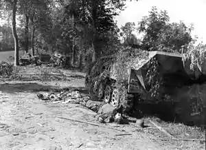 Немецкие войска отступали на восток, не делая попыток закрепиться в восточной Франции или Бельгии, и стали оказывать серьёзное сопротивление лишь на границах Германии. Из-за проблем в снабжении войска союзников снизили темп наступления и были неспособны вести серьёзные боевые действия. К середине сентября 1944 года сформировалась сплошная линия фронта от Ла-Манша до швейцарской границы[89]. До середины октября «Лейбштандарт», получивший небольшое маршевое пополнение, находился на фронте, однако в боевых действиях участия не принимал. Затем дивизия была отведена в тыл, в район Оснабрюка, где была включена в состав формирующейся 6-й танковой армии СС под командованием Й. Дитриха. «Лейбштандарт» за месяц сумел восстановить частично боеготовность — если численность личного состава удалось довести до штатной, то боевой техники (особенно танков и штурмовых орудий) поступило в два раза меньше, чем положено. Проблемы боевой подготовки осложняли краткие сроки, отведённые на неё, острейший дефицит горючего, недостаток опытного младшего офицерского и унтер-офицерского состава и квалифицированных военных специалистов (танкистов, артиллеристов, сапёров, радистов)[90]. В середине ноября дивизия была передислоцирована в район Кёльна, в рамках подготовки к стратегическому контрнаступлению вермахта на Западе.