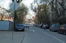 Западная (нечётная) сторона застроена пятиэтажными хрущёвками. У восточной стороны находятся образовательные учреждения: школа и полиграфический колледж.
