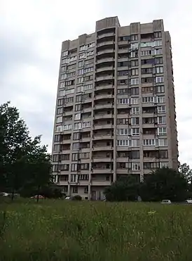 В стандартной планировке на этажах по 7 квартир: три 1-комнатные по 37 ÷ 40 м2 (жилая комната 16 ÷ 19 м2), две 2-комнатные по 42 ÷ 43 м2 и две 3-комнатные по 62 м2. Площадь кухни от 7 м2, в однокомнатных квартирах больше. Санузел раздельный. Высота потолков 2,5 м. Во всех квартирах относительно большая прихожая, кладовки и стенные шкафы, просторная лоджия (в многокомнатных квартирах по две лоджии). Значительная часть комнат и все лоджии нестандартной, отличной от прямоугольной, формы. Проходные комнаты не встречаются. В 2-комнатных квартирах смежно-изолированная планировка[2].