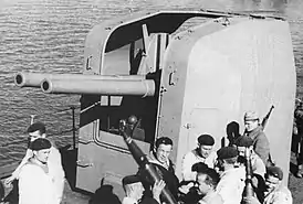 ![]() 100-мм/47 корабельная универсальная установка пушек Mod. 1928 на крейсере «Красный Кавказ» | |