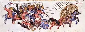 Бегство византийской армии после битвы при Азазе с арабами