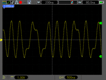 На рисунке представлена осциллограмма, снятая напрямую с действующего сетевого соединения. Как видим модуляция сигнала — фазовая. На один бит отводится один период. Смена фазы колебаний означает смену логического состояния от 0 к 1 или наоборот. В дальнейшем эти состояния декодируются, как Манчестерский код. Частота несущей 10 МГц, один период занимает 100 наносекунд. Амплитуда сигнала составляет около ±2 вольт. Род тока — переменный, сама передача всегда ведётся по гальванически развязанной от устройств линии. На входе и выходе у каждого сетевого устройства, работающего по стандартам 10Base-T установлен высокочастотный развязывающий трансформатор с коэффициентом трансформации 1:1.