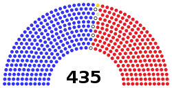 Демократическая партия (233) Республиканская партия (195) Либертарианская партия (1) Независимые (1) Вакантно (5) |