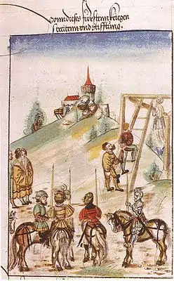 Казнь ободритского князя Вартислава. Миниатюра их Саксонской хроники Георга Спалатина (около 1530 года).