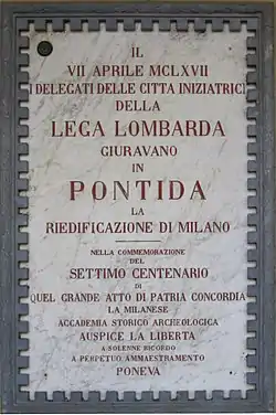 Мемориальная доска в Понтиде в память о создании Ломбардской лиги