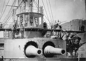 ![]() Башенная установка броненосца «Николай I» с 12"/30 пушками | |