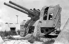 Лафет вращался электромотором мощностью 10 л. с., предусматривалась и возможность ручного поворота. Заряжать пушку можно было при любых углах возвышения, теоретическая скорострельность достигала 14 выстрелов в минуту. Практическая скорострельность зависела от физических возможностей расчёта. Максимальная дальнобойность пушки по вертикали составляла 9400 м, а эффективная — только 7400 метров.