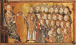 Евреи вручают диплом Людовику X за восстановление их прав во Франции в 1315 году
