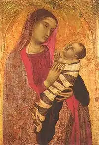 Амборджо Лоренцетти «Мадонна с Младенцем» (1319 г., Музей религиозного искусства в Сан Кашано Валь ди Пеза)