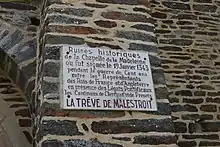 Мемориальная доска на руинах часовни ла Мадлен, где было подписано перемирие в Малеструа