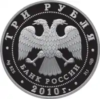 3 рублёвая монета 2009 г. из серебра 925 пробы. (реверс)