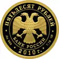 50 рублёвая монета 2009 г. из золота 999 пробы. (реверс)