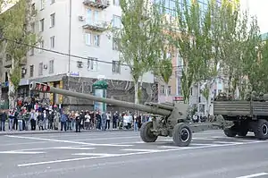 ![]() 152-мм гаубица 2А65 в парке «Патриот». | |