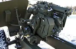 Для повышения скорострельности и снижения утомляемости номеров расчёта орудие оснащено двумя пружинными досылателями броскового типа для досылки снарядов и зарядов.